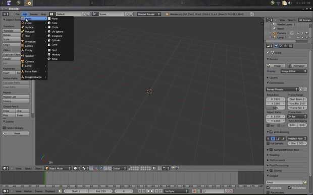 añadir una malla, ir al menú "Añadir", a partir de ahí se encuentre muchos sub-menús, el superior siendo "Mesh".
