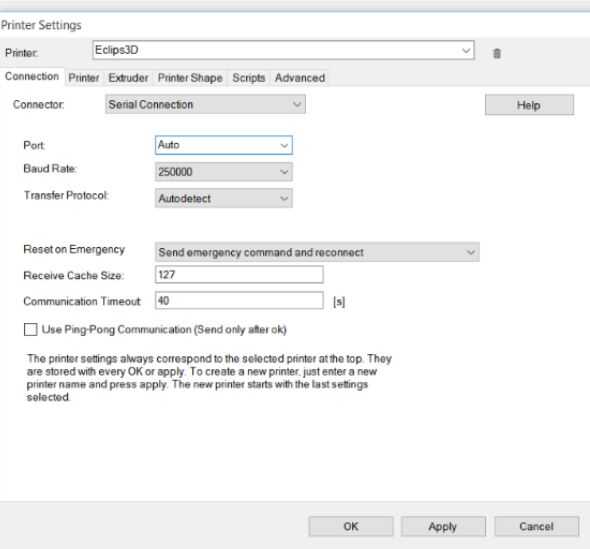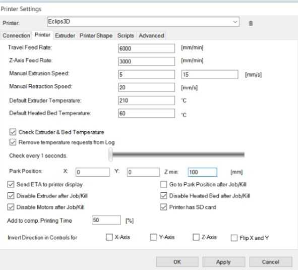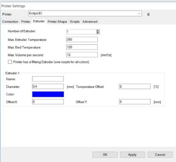 Hay unas cuantas opciones que tienes que cambiar en Repetier de acogida para que su Eclips3D funcionando bien. Simplemente siga las fotos en orden y asegurarse de que todos sus valores coinciden con los de las fotos. Tenga en cuenta que si está ejecutando una versión más reciente de Repetier que tuve en este tiempo, algunas configuraciones pueden verse diferentes o se han trasladado.