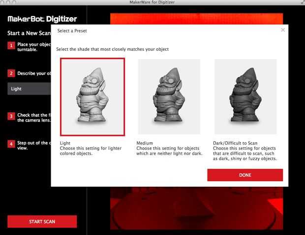 La plataforma girará lentamente y usted podrá ver el láser pasa sobre el objeto.