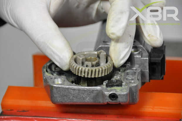 Saque el viejo engranaje usando un destornillador plano o una pequeña selección.