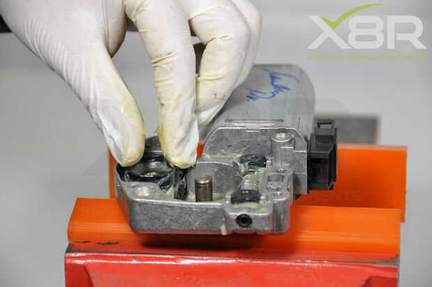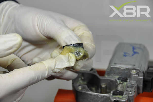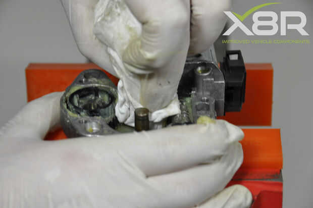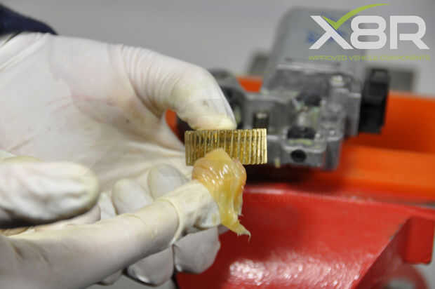 Una vez que ambas piezas del engranaje del viejo se quitan se recomienda para limpiar la grasa de motor.