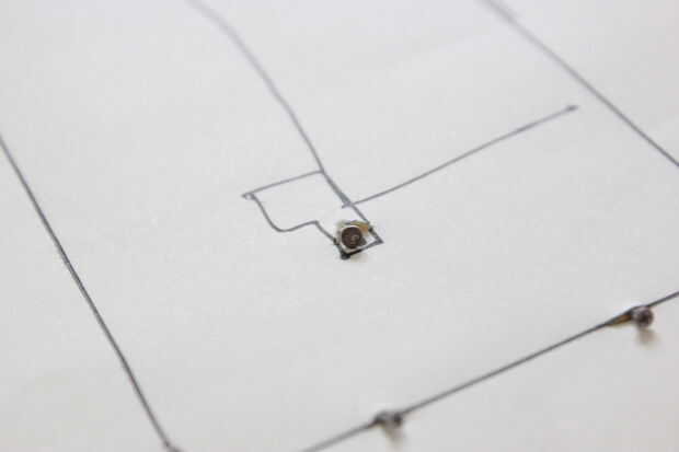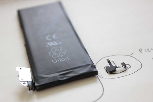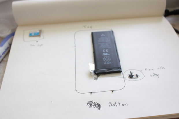 2. levantar desde el lado opuesto de la batería y asegúrese de mantener el pequeño pedazo de negro que sale con él, organiza en tu cuaderno a continuación.
