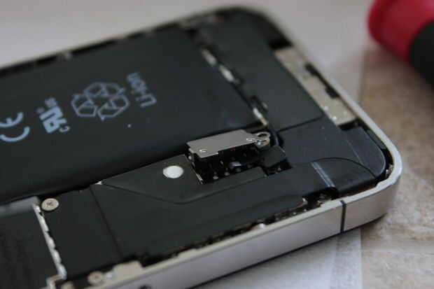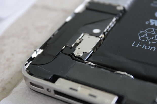 1. Quite un tornillo en el iPhone, (mirar la foto para la referencia).