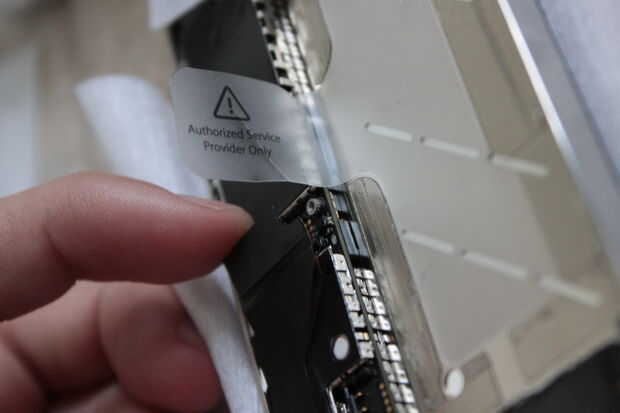 3. la batería toma mucha fuerza! Tenga cuidado de esto tire de la pestaña que dice proveedor de servicio autorizado solamente. Esto debe ayudarte pero todavía lleva un poco de tiempo para aflojar de su adhesivo. No use un destornillador para sacar esto, puede corto la batería, una guitarra simple selección hará el truco.