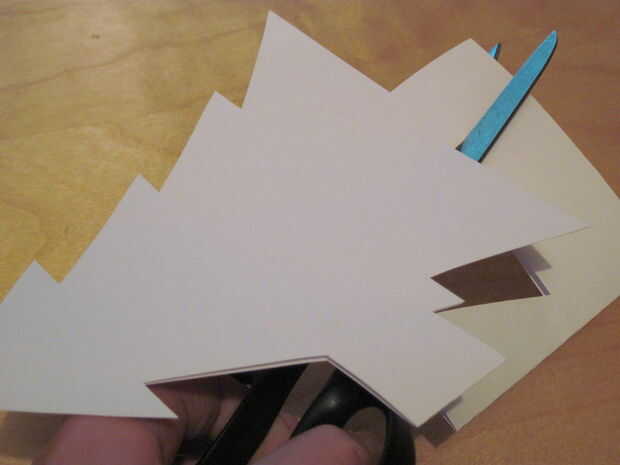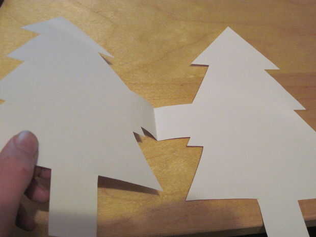 2. cortar el diseño. He utilizado un árbol de Navidad para los míos. Asegúrese de dejar al menos 3 cm del lado doblado se deshagan. Si usas papel más grande entonces usted necesitará más espacio.