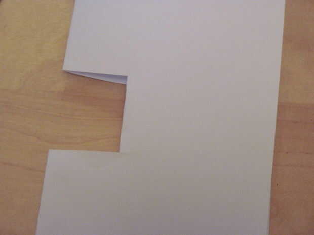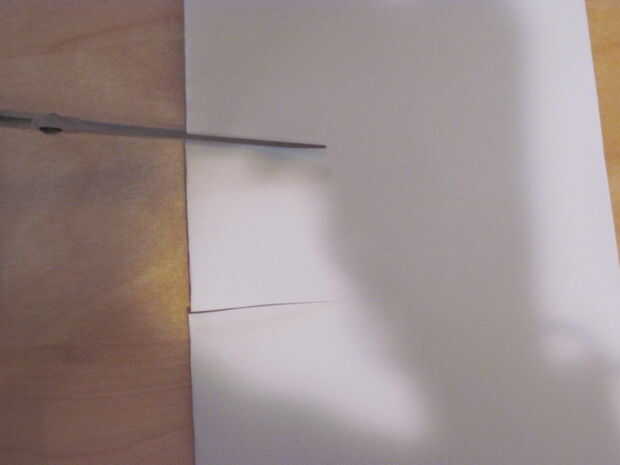 2. corte dos líneas de la parte doblada de la tarjeta. Cortar en 90 grados en el borde de la tarjeta y asegúrese de que tienen la misma longitud.
