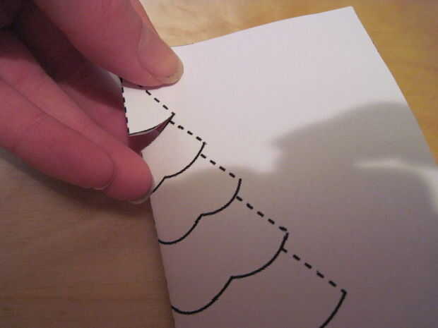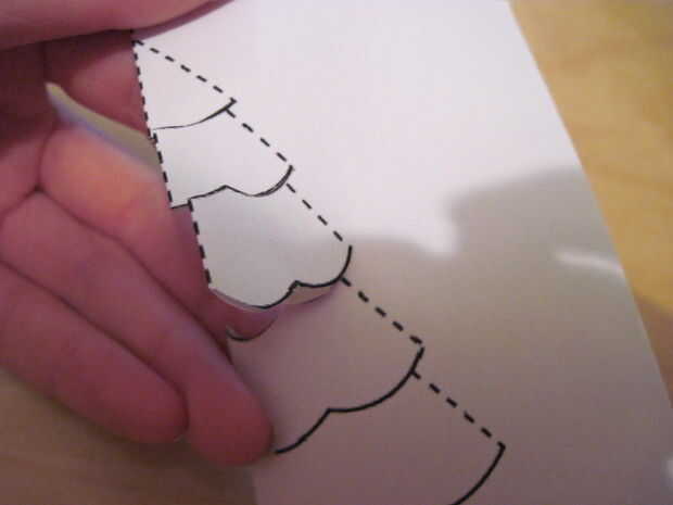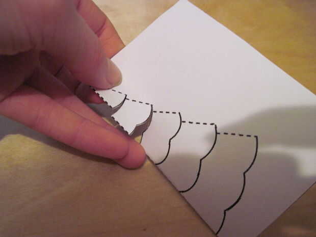 punta - antes de empezar a cortar hacia fuera, ir sobre la línea punteada con un clip a una pluma que no hay tinta para facilitar el paso 5.