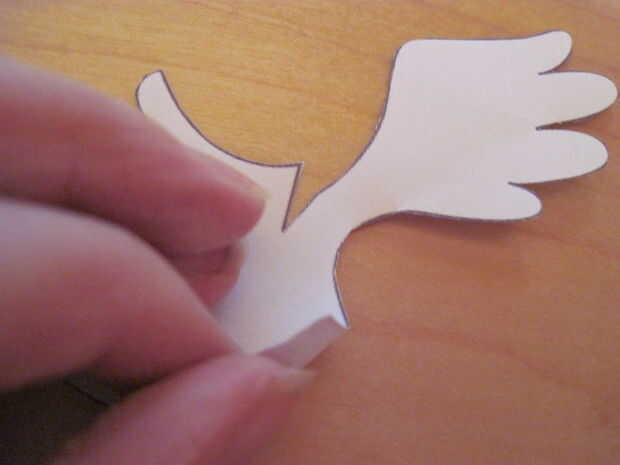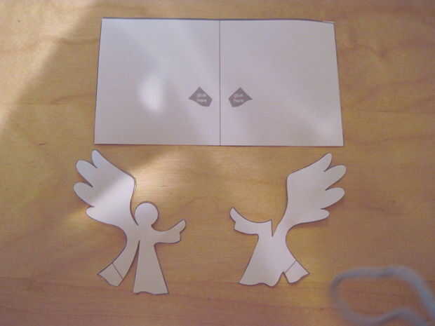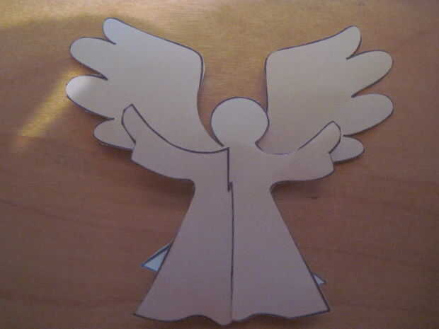 5. ranura de la abertura grande en la cabeza del ángel en la ranura en la otra pieza. Asegúrese de que en ambas piezas la mitad con el ala está detrás de la otra pieza.