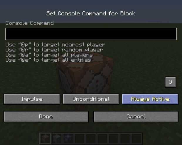 que esto hecho en modo creativo...Paso uno:ir a la barra de comandosPaso dos:tipo en: dará 137Paso tres:entonces u debe tener un bloque de comandos.DEBE PERMITIR A CHEATS PARA ESTE TRABAJO!
