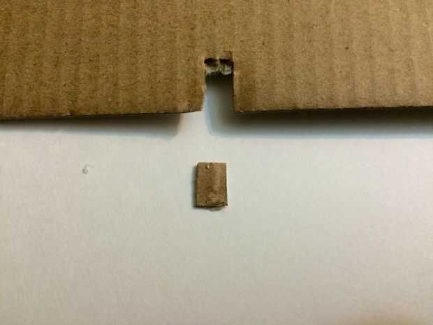 3. Cortar otro rectángulo pequeño (aproximadamente 0,25 cm X 0.5 cm) de cartón, como en el cuadro cuatro.