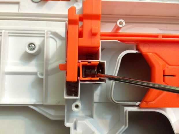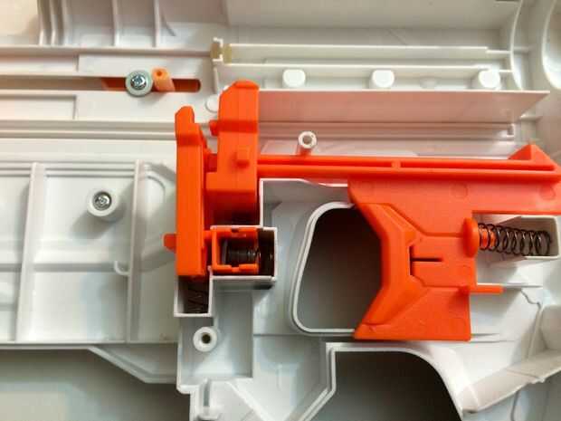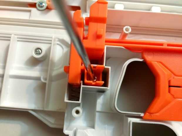 * Si desea eliminar el bloqueo de trineo perno, puede experimentar problemas con el carro en movimiento inesperadamente durante el uso de blaster. Este fenómeno puede ser muy frustrante, y como consecuencia no se recomienda la extirpación de esta cerradura.