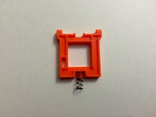 - Saque la pieza gris y su resorte desde el interior del botón de liberación del cargador, cuidando de no dejar que la primavera vuelan y se pierden. Este método se demuestra en fotos, dos, tres y cuatro. Mantener estas piezas, ya que tendrá que ser reemplazado.