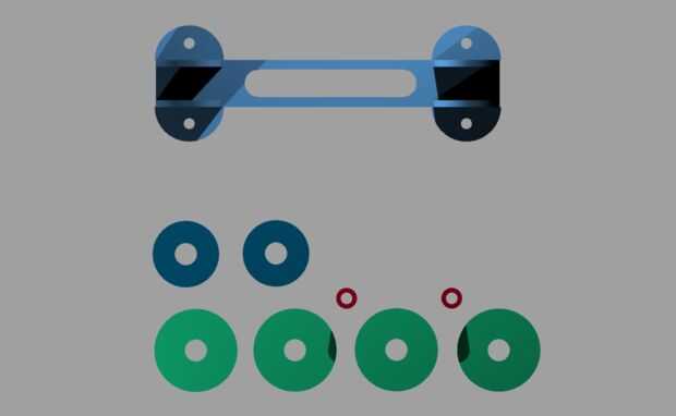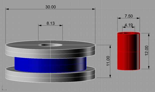 Cada polea se construye de tres separe las piezas de rotación libre: dos laterales, guías y la parte interna de un diámetro más pequeño: el orden de montaje de cada polea será parte externa parte interna + parte externa.