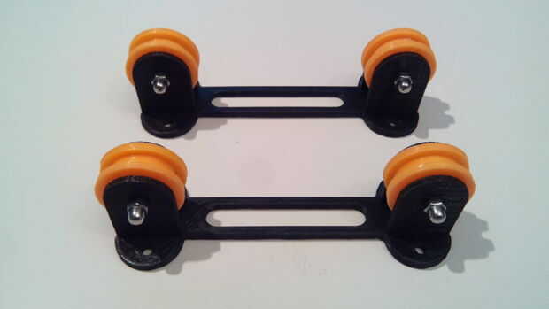 Sugiero para insertar un par de veces los tornillos Allen dentro del eje de apoya para asegurarse que puede insertarse sin dificultad. A continación, monta la polea compuesta cuatro dentro de los agujeros de soporte tal como se explica en los siguientes pasos: