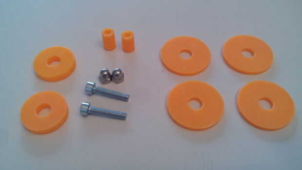 Después de que se imprimen todos los componentes de plástico, necesita cuatro tornillos Allen M3 de 20mm y cuatro tuercas de M3.