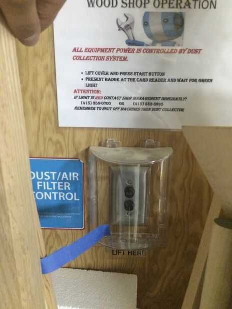 A continuación, asegúrese de que el colector de polvo de carpintería está en. Esta es la fuente de vacío.