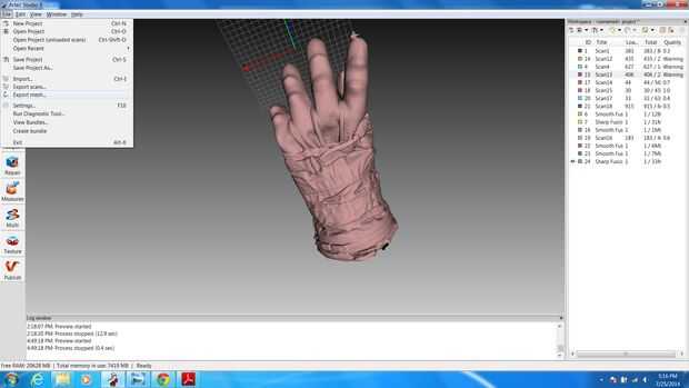 Acoplamiento: BAM, su listo para exportar la malla! Usted puede enviarlo a otro editor de malla / programa de CAD 3D como Meshmixer o mudbox. O si usted lo limpió los agujeros puede enviarlo directamente a la impresora 3D o la máquina CNC. Auge de divertirse.