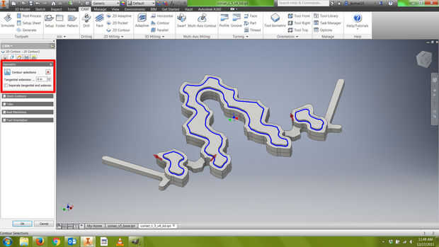 Para mi diseño, que tenía más de un contorno que quería la máquina. Empecé con el contorno cerca de la superficie de mi parte. Si su diseño es similar, continúe con los pasos siguientes.