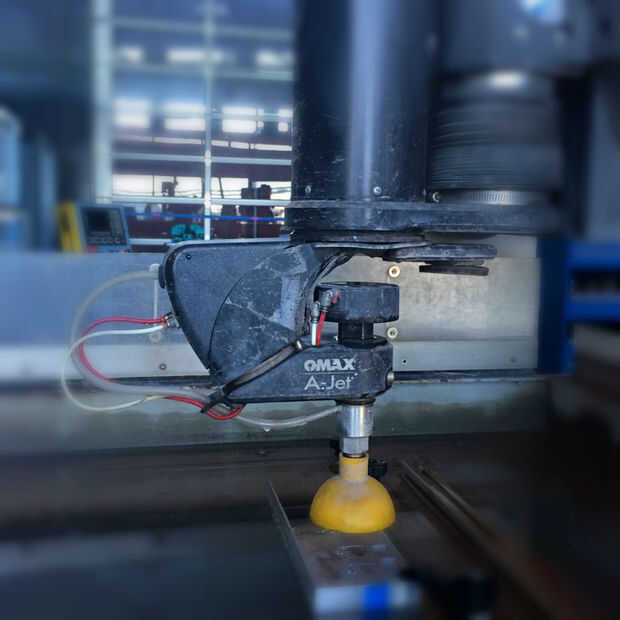 El A-Jet es una cabeza de corte multi-eje que amplía la versatilidad del corte del chorro de agua OMAX. Con un rango de corte de 0° a 60°, el A-Jet puede cortar los bordes biselados, lados angulados y buriles. Este Instructable le mostrará una manera fácil de compensar de la forma cónica o crear cortes angulares sencillos en el chorro de agua OMAX.