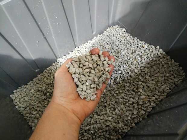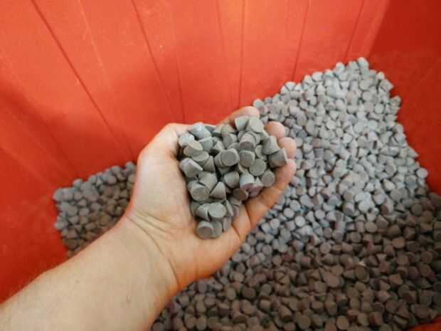 Medios de agitación viene en cerámica y plástico. Cerámica es generalmente de acero y plástico de aluminio. Los medios de comunicación viene en diferentes formas, tamaños y granos (Ver selección de McMaster Carr aquí). No tengas miedo de grueso medio: todavía puede tomar horas y horas para conseguir sus piezas caído suficientemente.