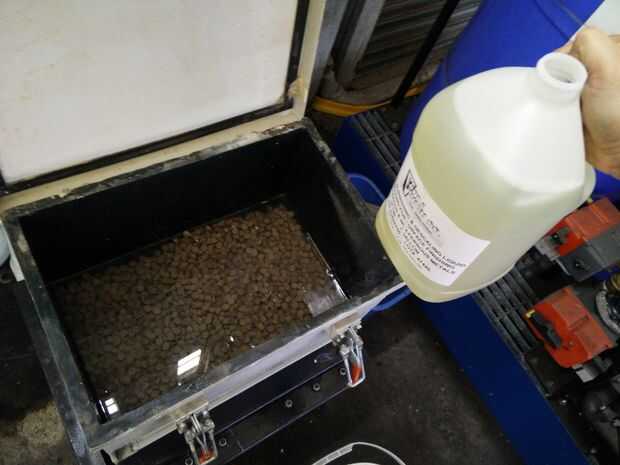 3. Llene el tanque con agua hasta que todo esté apenas sumergida. Vierta un poco de compuesto (1.5 onzas por galón de agua aproximadamente).