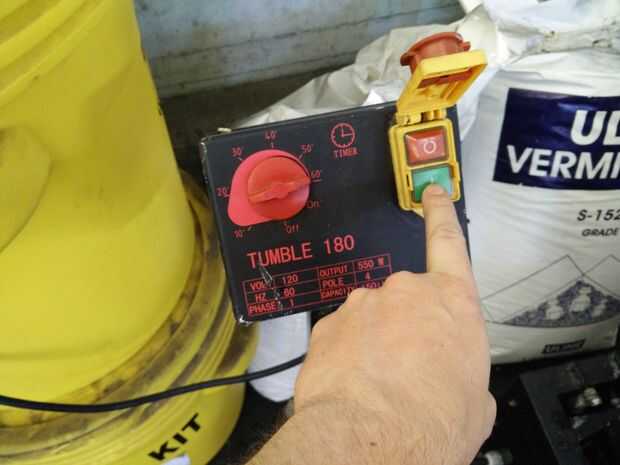 - Abra el vaso y cubra el interruptor con la parada de emergencia (no presione la parada o se apagará el vaso)