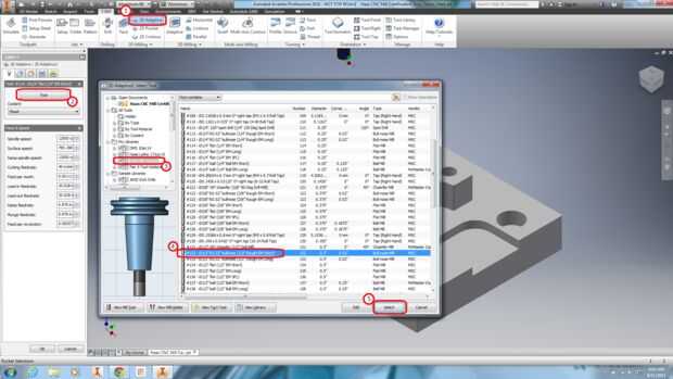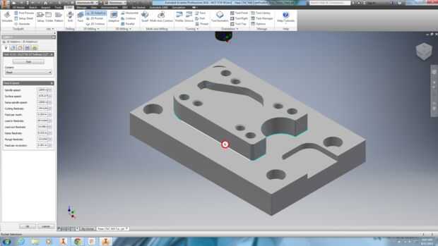 Nota: No es visible en la simulación, pero refrigerante está activado por defecto. Todas las herramientas de embarcadero 9 CNC herramienta biblioteca tienen refrigerante inundación habilitado de forma predeterminada. Es importante activar el inundación de refrigerante durante el compensación adaptativa porque claro adaptación genera calor y chips y estos deben ser retirados con el refrigerante de la inundación.