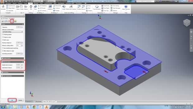 Nota: Es importante tomar tu tiempo y ser precisos cuando se selecciona geometría. En este caso, la precisión es necesaria seleccionar el contorno y no la cara inferior. Selección de la cara inferior no máquina todo el material de stock.