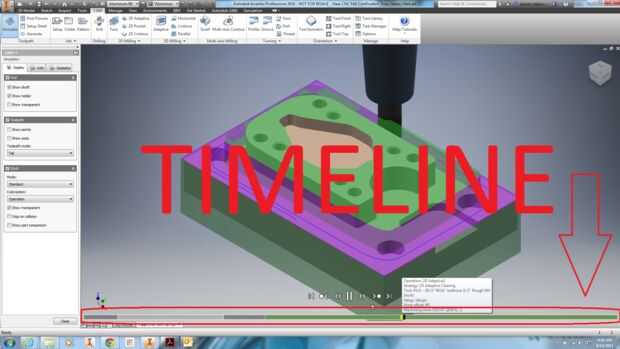 14. para avanzar en las trayectorias de herramienta, cerca de la parte inferior de la pantalla haga clic en el súper delgada, difíciles de encontrar poca barra gris, llamada la línea de tiempo. Esto salta a un lugar en la simulación.