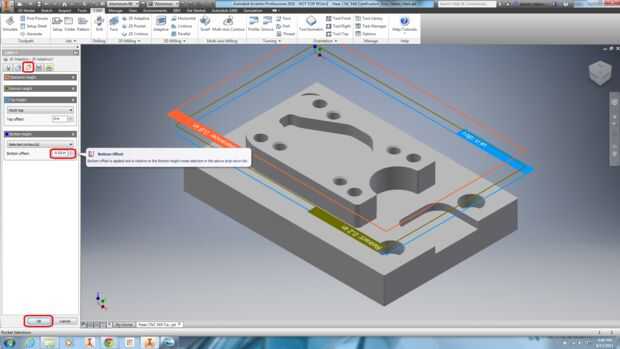 Nota: Mecanizado un poco más profundo que el modelo inferior garantiza un acabado agradable al lado después de que la pieza se voltea y se mecaniza la parte inferior de.