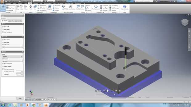13. Haga clic en > | y el modelo. La parte superior de nuestro modelo es totalmente mecanizada y estamos listos para voltear la pieza y la máquina el material de sujeción (restante).