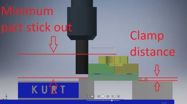 Mínima parte palillo hacia fuera es la distancia mínima de que la culata debe sobresale el tornillo para evitar que las mordazas de acero endurecidas de mecanizado. Por esta razón es una buena idea usar un 3D modelos para representar la sujeción de piezas.