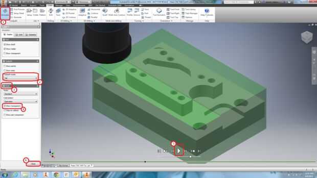 Nota: La simulación es muy importante y es exactamente lo que hará la máquina. Pago especial atención a los detalles tales como: ¿de qué lado de la parte funciona la herramienta? ¿Cuál es el espesor de material removido?