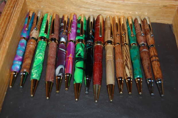 Montaje de la pluma es relativamente sencillo. Montaje de esta pluma no es diferente de montar cualquier otra pluma dada vuelta (si está utilizando el hardware europeo superior redondo). Como se muestra en mi video, el inserto roscado se presiona primero en el extremo superior del tubo superior, entonces viene el clip y el tornillo de la grapa, después de que la punta se presiona luego en el extremo inferior del tubo inferior, el mecanismo de giro se presiona en el extremo opuesto del cañón inferior, luego el anillo central se pega a la tennon y, a continuación, los tornillos del cartucho de tinta en el extremo del mecanismo de giro. Por último, esta pluma está lista para usar! Estas plumas son muy únicas si su hardware Slimline o de la Redondo-tapa Europea y cuando todos estos pasos son seguidos, los resultados son notables. También podría ser grabados si tuvieras un método para hacerlo. Todavía estoy tratando de averiguar una forma de lograrlo usando una Dremel.