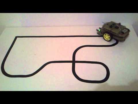 - Sigue líneas: robot, que sigue una línea negra sobre una superficie blanca; se trata de un robot con ruedas de dimensión más pequeña y está equipado con detector de color (simple sensor de luz)