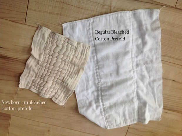 Prefolds: vea el cuadro 2. Estos se cosen en lo que parece de tres paneles con el panel central es más gruesa. Usted puede poner a un bebé de una manera tradicional o se puede doblar en tres (triple) y colocar en una cubierta como una almohadilla (ver cuadro 4). De cualquier manera, esto requiere de una cubierta. Estos también vienen en varios tamaños de premie, recién nacido y a hasta XL para niños pequeños.