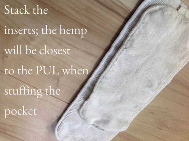 Hay muchas maneras diferentes de bolsillos de cosas. Más vienen con inserciones de microfibra 1-2, y estos pueden funcionar bien para usted. Una inserción de microfibra pequeña es todo lo que necesita un recién nacido. Como los bebés crecen y algunos se vuelven pesadas mojan, puede que desee agregar un tipo diferente de introducir es más absorbente. Se puede elegir entre carbón, Zorb, cáñamo y bambú. Tengo pesadas mojan, y opto por mis bolsillos con dos insertos de relleno: microfibra en la parte superior más cercana al interior y más cercana a la bebé para absorber la humedad, luego un cáñamo insertar debajo de eso más cercano a la PUL para ayudar a bloquear en humedad. Esto también guarda pañales ajuste desde cáñamo es a menudo más fino aún más denso que la microfibra. Ver foto 3 para ejemplos de tipos de rellenos (también llamado soakers y aumentadores de presión). Ver fotos 4-6 para agregar un refuerzo y relleno de un bolsillo.