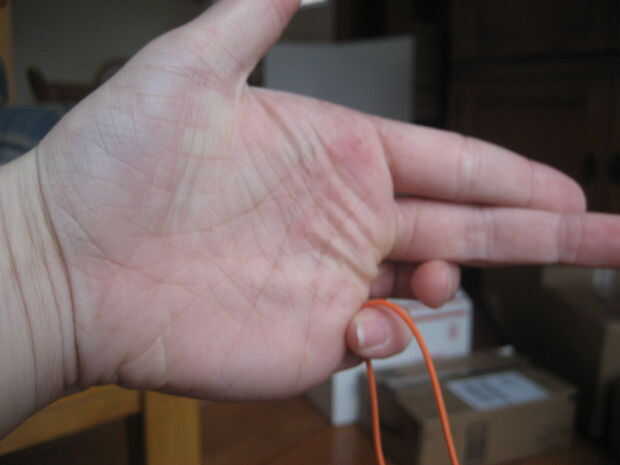 3. con él aún pellizcado, tire de ella alrededor de su dedo pulgar (no envuelto alrededor ni nada)