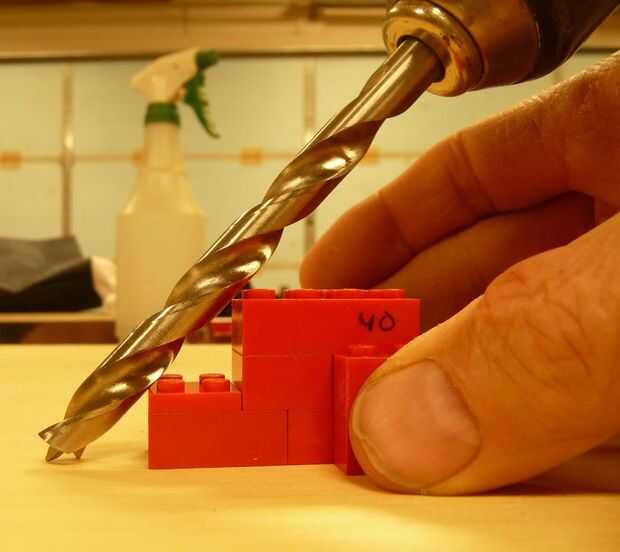 El extremo de un brazo tiene una muesca el es 16mm de ancho y 16mm (9.6 9.6 3.2) alto. Esto hace un ángulo de 45 grados cuando la broca toca ambas esquinas.