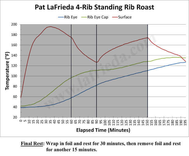 En este punto, es más que suficiente calor residual en la carne para terminar de cocinarla. Aplicación de calor más se cocine demasiado partes del asado. Reclinando el asado, dejar cocinar las capas externas de la carne y que el centro coger para arriba. Aumenta la temperatura en el centro del asado, la línea azul en el gráfico anterior, constantemente en sobre la misma tasa durante el resto como lo hizo mientras la carne estaba todavía en el horno. Se trata de cocina de arrastre y es claro de los gráficos que es una parte importante del proceso de cocción.