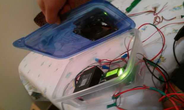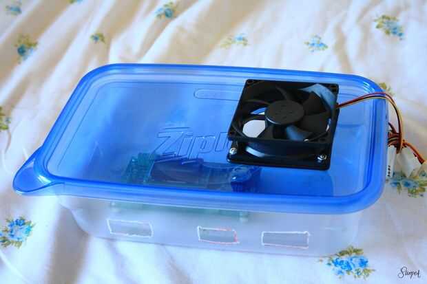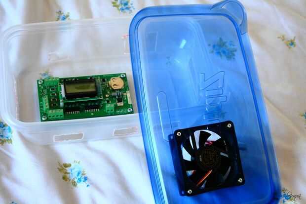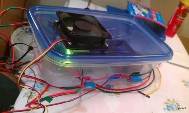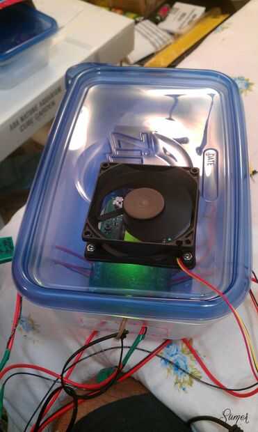 Si usas DIM4 para iluminar el LED directamente, va a producir mucho calor. Con el fin de enfriarlo necesita otro ventilador pequeño. Para mi dispositivo, coloqué mi LED Driver y DIM4 dentro de un recipiente de plástico y adjunta un ventilador en la parte superior haciendo un agujero circular en la tapa superior justo debajo de las aspas del ventilador. Hice agujeros en los lados de la caja de plástico de donde los cables pueden entrar así en cuanto a la circulación de aire.