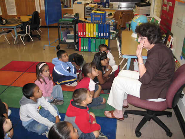 El profesor y los alumnos practican el concepto juntos. El maestro señala los estudiantes para responder al unísono como revisan el concepto.