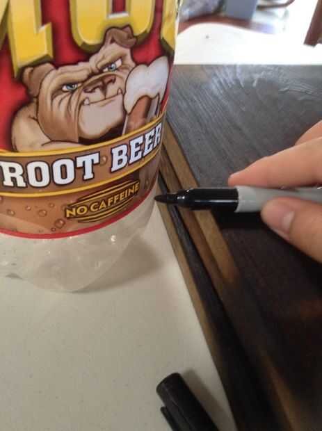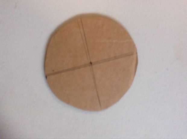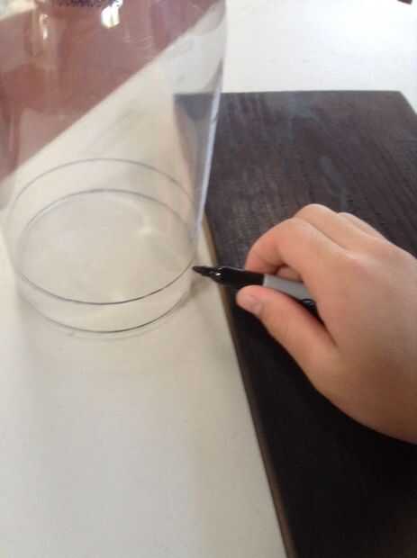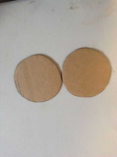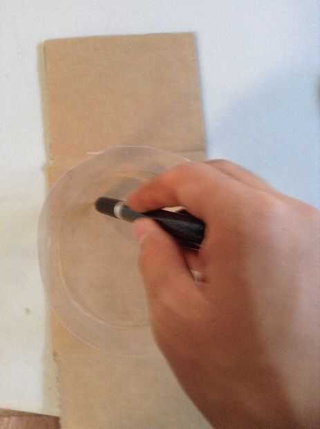 11. marca 2 círculos en la cartulina usando la botella de plástico como una plantilla y corte éstos hacia fuera aproximadamente 1/16 de pulgada dentro de la línea y luego pegarlos con pegamento blanco y marcan el centro del círculo.