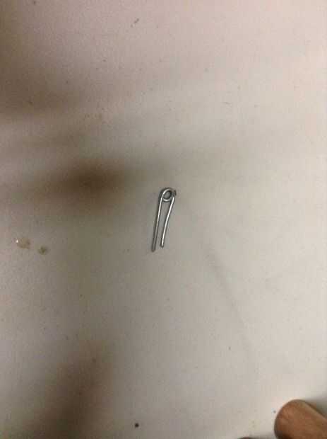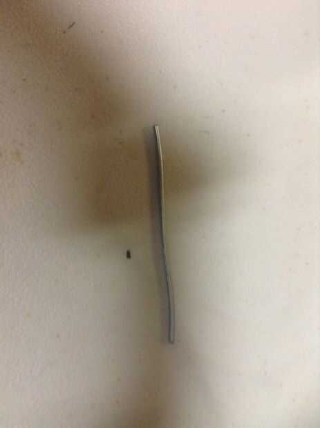 13. corte un trozo de alambre de acero 3 pulgadas y hacer un pequeño lazo en el centro el alambre lo suficientemente grande para que pase a través de otro pedazo de alambre. Asegúrese de que las patas de alambre están apuntando en la misma dirección. Doble el extremo de los cables hacia adentro, esto ayudará al anclaje de cable en el epóxido más adelante.