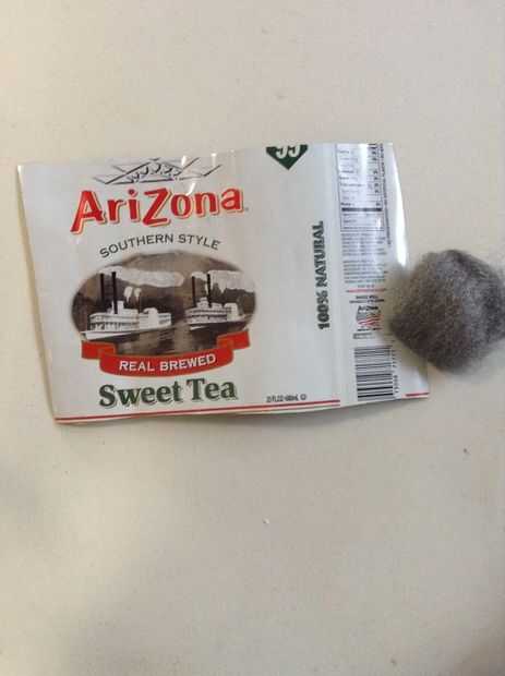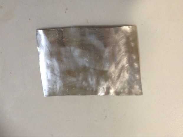 3. usando lana de acero o papel de lija, sacar toda la pintura y la capa clara en la hoja de aluminio.