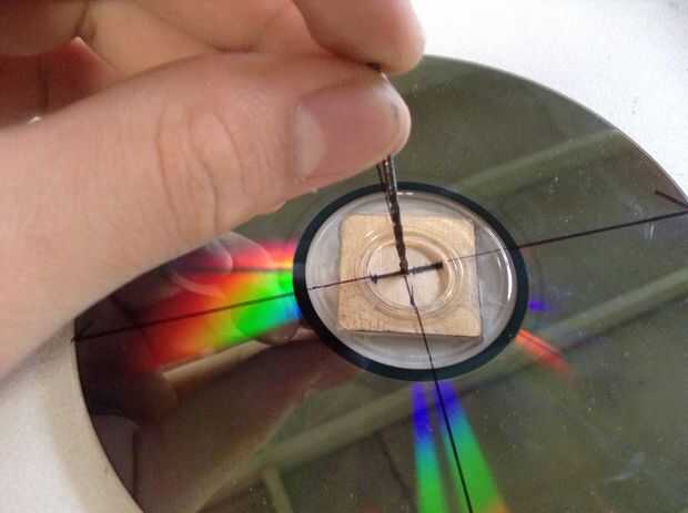 7. Marque el centro del CD/DVD y perfore un agujero de 1/16 de pulgada