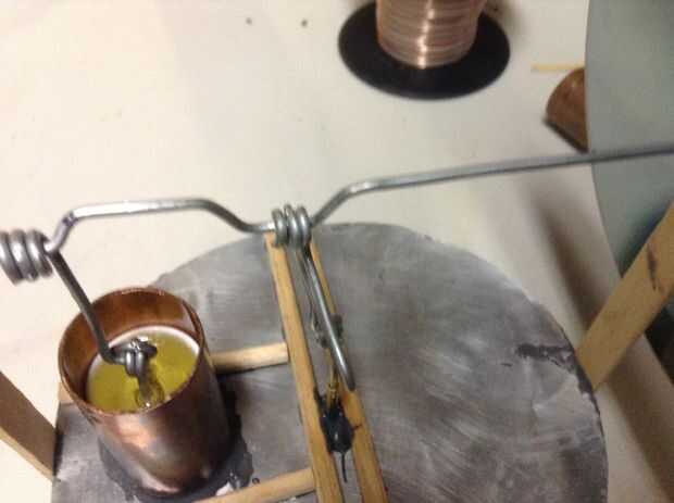 Luego pegue el pistón tapa de pegamento en el tubo de 3/4 pulgada de cobre medio camino hacia abajo. Mida la distancia entre el lazo en el pistón al alambre de suspensión. Corte un cable de aproximadamente una pulgada más y crear un lazo en un lado y lazo al otro lado alrededor del bucle en el pistón.
