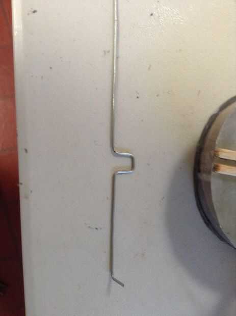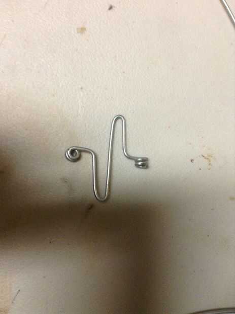 Coloque el cable en la línea para arriba de la leva y palitos a la tubería de cobre. Luego marque el punto a poco más de la varilla de desplazamiento en el alambre y otra vez 1/8 de pulgada a cada lado. Tomar el alambre hacia fuera otra vez y doblar 1/8 pulgada marca 90 º, esta hace tiempo la curva perpendicular a la primera leva. Medir 1/2 pulgadas y doble en una segunda cámara (esto es muy confuso así que mira las imágenes y hará más sentido).