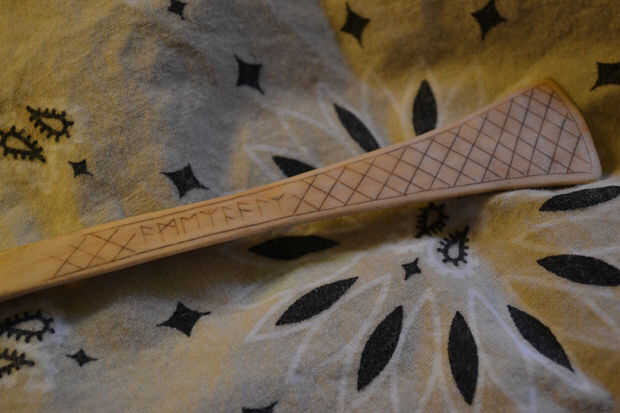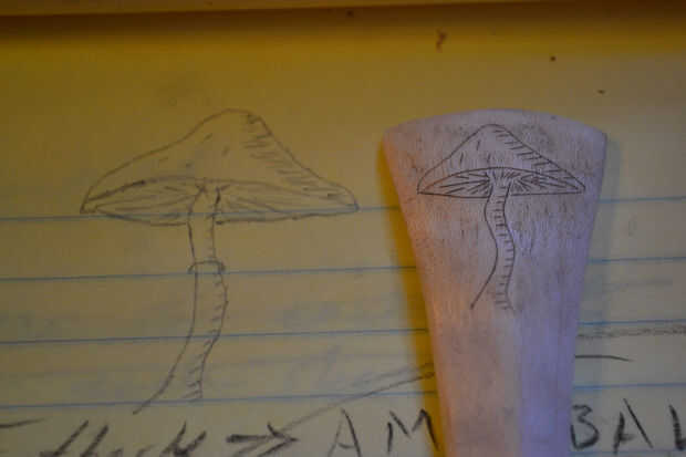 Ahora estamos casi listos para cortar, pero primero necesitamos algunas líneas a seguir. Si eres un macarra y no cagarla: Felicitaciones! Usted puede ir al siguiente paso. Para el resto de nosotros los seres humanos y los artesanos que tendremos que exponer o diseño en lápiz (usé tinta aquí, fue terrible!) en nuestra pieza. Esbozo lo hacia fuera sobre el papel hasta que usted decida sobre un patrón que realmente gusta, luego transferir a la madera. Ir poco a poco, estar aseado y usar un lápiz afilado para el mejor detalle. Para personas que recién empiezan les recomiendo pegarse con líneas rectas y suaves curvas desde corte agudo da vuelta pueden ser difíciles (aprendí esto cuando se intenta cortar el élfico de la escritura en esta cuchara). Usted puede borrar sólo frotando con el dedo si arruinara (otra razón para el uso de lápiz). Una vez que todo te gusta así, ya estamos listos para el corte!