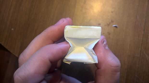Suavemente presione el medio y el exterior del fuelle en y empuje la parte superior hacia abajo para facilitar el doblez.